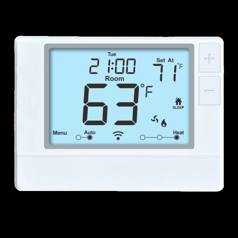 ترموستات غیر قابل برنامه ریزی دارای اندازه صفحه نمایش 5.92 Sq.in (3825mm2) است که خواندن و حرکت در تنظیمات را آسان می کند.صفحه نمایش با انتخاب رنگ های روشنایی پس زمینه افزایش یافته است - آبی، سفید، یا سبز، اجازه می دهد تا شما را به سفارشی ترموستات برای متناسب با ترجیحات خود را و تکمیل دکوراسیون خانه خود را.