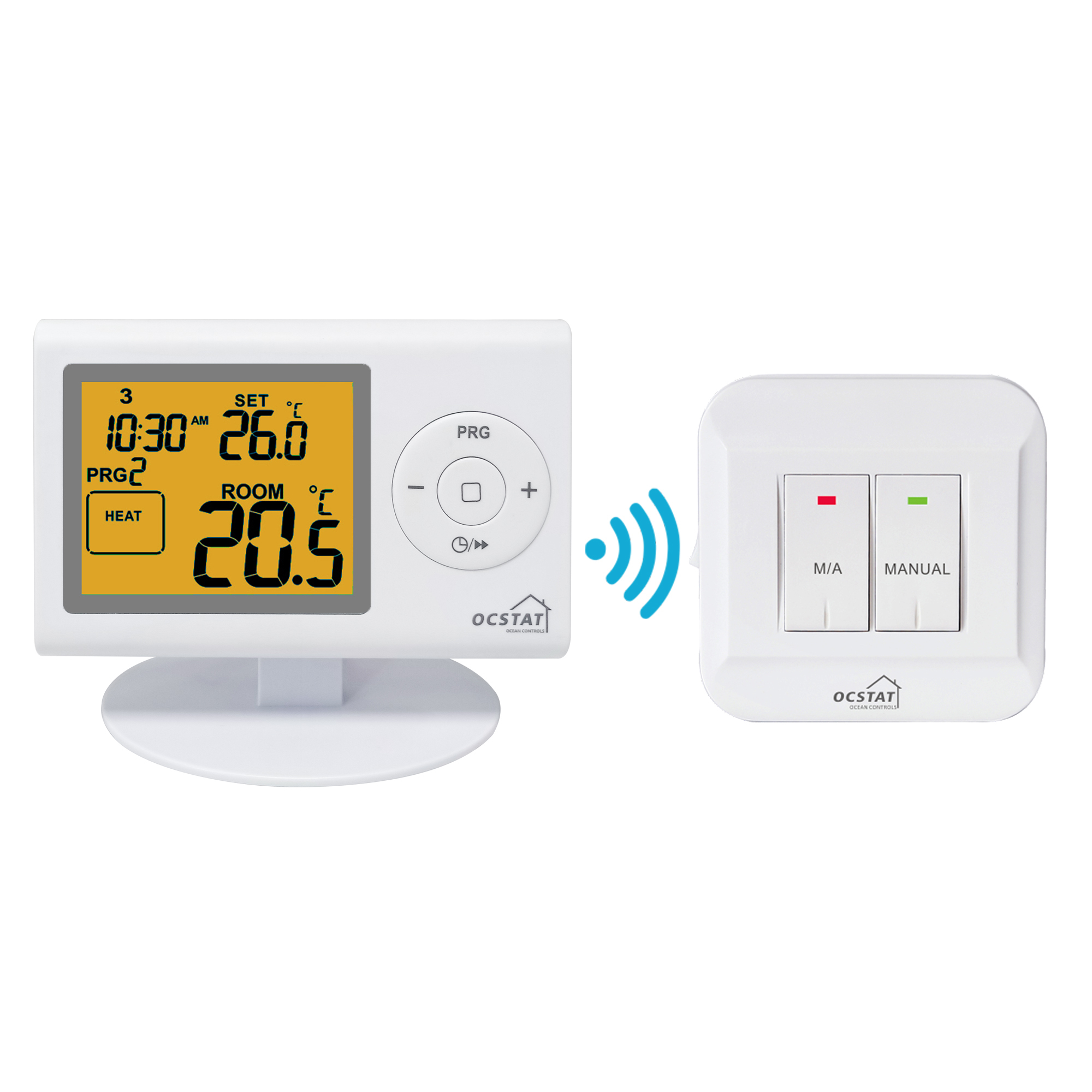 A1: ترموستات اتاق RF از برند OCSTAT است و شماره مدل آن ST2402RF است.
